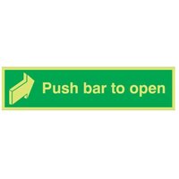 Sitesafe: Fie Exit Push to Open Photoluminescent Vinyl Sign - 600 x 75mm Clearly identify escape routes and emergency exists - even in the event of a power failure. Available in self-adhesive vinyl for indoor use or 1.2mm polypropylene material for indoor and outdoor use. Made using an environmentally friendly polyester film which is white in appearance in daylight and glows brightly when lighting is no longer available. Compliant with PSPA, DIN, IMO and British Standard requirements. All symbols, where applicable, conform to ISO 7010. Ensure the correct use of a directional arrow within an escape route sign. Use of any upper and lower case lettering - visually impaired people read and more clearly understand written messages with only an initial upper case letter. MPN: CR00133 EAN: 5036140361522 Fie Exit Push to Open Photoluminescent Vinyl Sign - 600 x 75mm Attributes: Description: Push Bar to Open Design: PUSH BAR TO OPEN Fixing Method: Self Adhesive Legend/Symbol Colour: White MFR