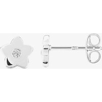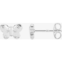 Beautifully crafted in sterling silver, these cute and dainty earrings feature a cross design with an embossed heart and single cubic zirconia stone for added sparkle. Part of the Fleur collection made especially for children, the earrings are finished with a traditional butterfly clasp closure for easy wear and safe removal. Wear with the matching pendant necklace to complete the look. - Crosses - Silver Earrings - Studs