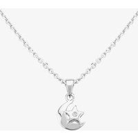Twinkle like a star with this beautifully delicate pendant necklace. Crafted in sterling silver this adorable necklace features a star shaped pendant with a shimmering cubic zirconia stone for added shine. Part of the Fleur collection made especially for children, the pendant sits upon an oval cable link chain that is finished with a spring ring clasp for safe wear and easy removal. Pair with matching earrings from the collection for added sparkle. - Moon and Stars - Silver Necklace - 18 inch