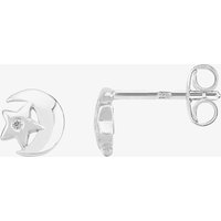 Embrace the twinkle of the night sky with these delicate star shaped studs. Beautifully crafted in sterling silver, these pretty earrings feature a star shaped design with a single cubic zirconia stone for added sparkle. Part of the Fleur collection made especially for children, the earrings are finished with a traditional butterfly clasp closure for easy wear and safe removal. Wear with other star themed items from the collection for a glistening finish to any outfit. - Moon and Stars - Silver Earrings - Studs