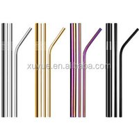 Food Grade Stainless Steel 304 Silver Bent Straight Cool Drinking Straw With Cleaning Brush