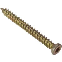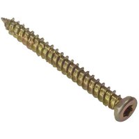 Forgefix: Concete Fame Scew TORX Compatible High-Low Thead ZYP 7.5 x 122mm Bag 10 FORCFS122G These Forgefix high-low thread Concrete Frame Screws are Zinc Yellow Passivated for increased resistance to corrosion. They offer a virtually stress free fixing, allowing close to edge applications. They are through-fixing, eliminating the need for marking and re-positioning when fixing batons etc. The Torx compatible head of the screw enables increased torque control. APPLICATION Extremely popular fixing for window and door frames. Also now used as a versatile fixing for many applications in DIY, Joinery, Plumbing and Electrical trades. The Zinc Yellow Passivation process of electroplating is similar to the 'Galvanised' and 'Zinc Plated' processes but with the addition of a yellow dye. It offers an aesthetically pleasing finish, whilst having excellent resistance to corrosion. By design, Torx compatible head screws resist cam-out much better than Phillips or Slotted screws. Where Phillips
