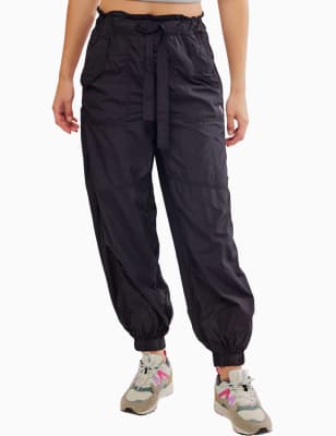 These Fly by Night joggers by FP Movement are a comfy choice for casual days. They're made in a relaxed fit and convenient 7/8 length, with a flattering straight leg featuring a zip detail running from the cuff to mid-calf. The mid-rise waistband is elasticated for comfort and fastens securely with a drawstring. Constructed from special water-resistant fabric, these trousers are also lightweight and durable for longer-lasting wear. Two front pockets and two zipped back pockets store your essentials.