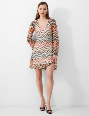This vibrant paisley cotton-blend dress from French Connection is a standout piece for your warm-weather wardrobe. It's cut in a comfy relaxed fit, with a flattering, gathered v-neckline and short frill sleeves with ladder lace trims. The shirred waist is also elasticated at the back for comfort and a cross-back detail adds interest. A deep, frilled tier made from contrasting fabric adorns the hem of the gathered midi skirt, bringing swishy movement.