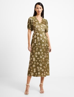 Let this floral midi dress from French Connection be the star of your warm-weather wardrobe. It's cut to a relaxed fit for comfort and features voluminous long sleeves. For a smart-casual look, this wrap dress has a shirt-style bodice complete with a neat collar. It includes a feminine tie on the waist to further enhance your figure.