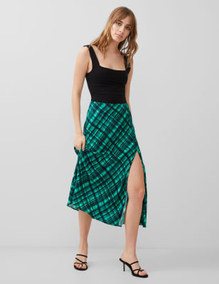 French Connection Women's Satin Floral Midi Split Front A-Line Skirt - 8 - Green Mix, Green Mix