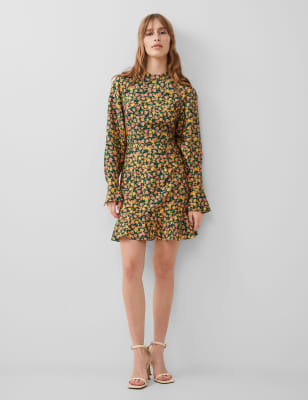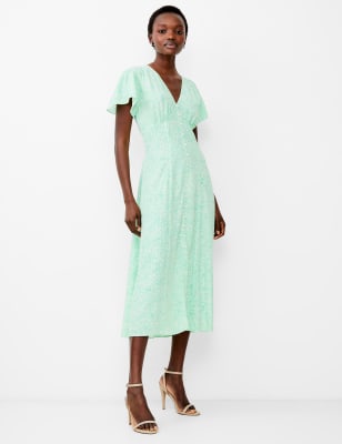 This French Connection midi dress is crafted from smooth satin for a luxurious feel. It's cut to a regular fit, with a striking floral print and short puff sleeves to add a touch of volume. The wrapped front creates a flattering feminine shape, accentuated by shirring at the shoulders which forms an elegant frill at the edge of the v-neck.