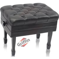 Adjustable 100% Genuine Leather Duet Piano Bench By Griffin This adjustable padded leather piano seat with storage has a nicely crafted, solid wood frame and legs with black colors that coordinate with any decor. The soft, padded leather seat is ...