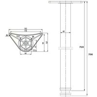 Length - 710 mm (+25 mm height adjustment) maximum length 735 mm Diameter - 60 mm Material: Tube - steel, mounting plate - aluminium, Foot - ABS plastic Complete with mounting plate and fixing screws