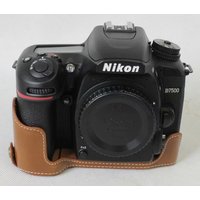 Genuine Cowhide Leather Half Bag Cover for Nikon D7500 Digital SLR Camera - Brown