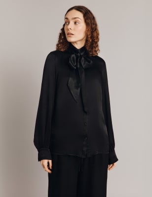 Ghost Women’s Pure Cotton Broderie Button Through Blouse – Black, Black