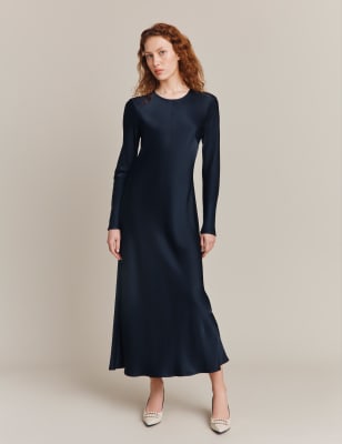 This Ghost slip dress is a versatile piece that can be dressed up or down. It's cut in a regular fit, from lightweight satin fabric that drapes effortlessly over the body. The v-neckline and sleeveless design create a flattering silhouette. A midaxi hemline lends an elegant finishing touch.