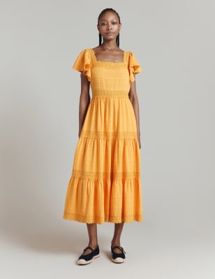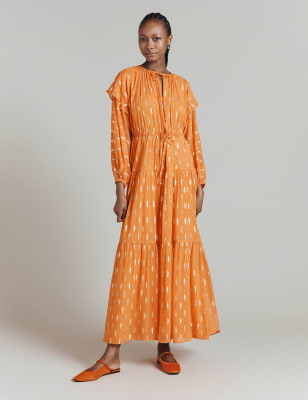 Ghost Women's Sheer Floral Maxi Tiered Slip Dress - Orange Mix, Orange Mix