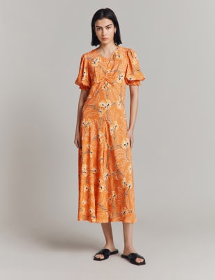 Ghost Women’s Sheer Floral Maxi Tiered Slip Dress – Orange Mix, Orange Mix