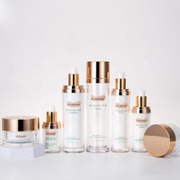 Golden Cosmetic Packaging Plastic Skin Care round Set 15ml to 120ml Acrylic Lotion Bottle and 30g to 50g Jar Set in Stock