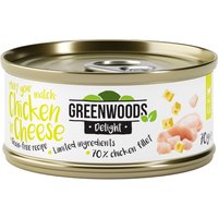 Do you want to spoil your cat to your heart's content? Then we've got something for you: Greenwoods Delight Chicken Fillet with Cheese wet cat food: Supplementary wet cat food for adult cats Grain-free recipe Just a few, carefully selected ingredients 70% finest chicken fillet Greenwood's Delight premium supplementary wet cat food Chicken 'n Cheese is made with 70% tasty chicken fillet in a delicious broth. The grain-free recipe contains just a handful of carefully selected ingredients. In other words, no fillers, preservatives or artificial flavours. A real delight that will keep your cat purring. Delectable cat food for all 9 lives. Give them Greenwoods – it’s simply great. Meet your match: Chicken 'n' Cheese is available in a 6 x 70g pack and in 24 x 70g and 48 x 70g saver packs.