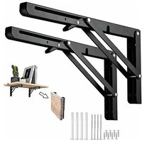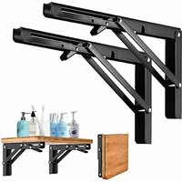 Héloise - 2pcs Foldable Shelf Bracket 250mm Folding Bracket Wall Shelf Heavy Duty Folding Bracket Black Foldable Console Bracket for Table Wall Shelf