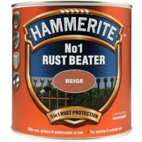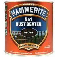 HMMNO1DB250 No.1 Rust Beater has the following specification: Colour: Dark Brown. Size: 250ml. Hammerite No.1 Rust Beater provides a high-build finish to heavily pitted areas of rust and prevents new rust forming. Compatible with most topcoats, this Rust Beater kills rusts, primes and undercoats in one. It is corrosion resistant and suitable for ferrous metals. Can be applied via brush or roller, and directly to rust. Touch dry in 2 hours. HammeriteA05B2001