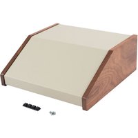 Hammond 1456CWW Series Sloped Aluminium Cases with Walnut Side Panels - Hammond 1456PK4WHCWW, Sloped aluminium enclosure from the Hammond 1456CWW series. The enclosure has side panels made from real oiled walnut with a black ventilated steel base. Hammond 1456PK4WHCWW Sloped Case 265x356x109.5mm Wood/Aluminium Walnut/Beige