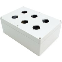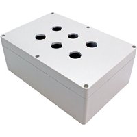 Hammond 1554 PB Series Grey Polycarbonate Pushbutton Enclosures - Hammond 1554MPB6, A pushbutton enclosure from the Hammond 1554 series, moulded in light grey polycarbonate. The enclosure is designed for mounting 22mm diameter control switches and accessories like pushbuttons and / or matching indicators. Hammond 1554MPB6 22.5mm Pushbutton Enclosure 240x160x90mm Polycarbonate Grey