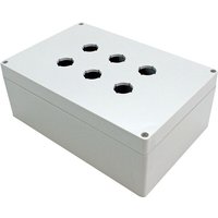 Hammond 1554 PB Series Grey Polycarbonate Pushbutton Enclosures - Hammond 1554PB6A, A pushbutton enclosure from the Hammond 1554 series, moulded in light grey polycarbonate. The enclosure is designed for mounting 30.5mm diameter control switches and accessories like pushbuttons and / or matching indicators. Hammond 1554PB6A 30.5mm Pushbutton Enclosure 240x160x90mm Polycarbonate Grey