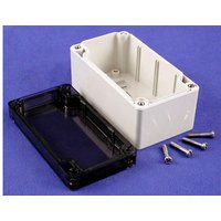 Hammond 1554 Series Watertight Polycarbonate Enclosures Smoked Lid Grey - Hammond 1554YA2GYSL, This Hammond 1554 series watertight Polycarbonate enclosure is ideal for mounting PCBs or DIN rail mounted components. The enclosure is moulded in light grey UV stabilized Polycarbonate material which carries a flammability rating of UL94-5VA and is suitable for outdoor use. The gasketed lid is manufactured from smoked polycarbonate which carries a UL94V-0 rating. The lid has a two piece tongue & groove construction that provides protection against access of oil, dust and water. It is secured with included M4 stainless steel machine screws which are threaded into corrosion resistant bushings for repetitive assembly and disassembly. The Polycarbonate construction meets NEMA Type 4, 4X, 6, 6P, 12 & 13 ratings which meet and exceed IP ratings up to and including IP68, cUL and UL 508A listed (File # E65324). Hammond 1554YA2GYSL Watertight PC Enclosure, Smoked Lid 300 x 240 x 120, Grey