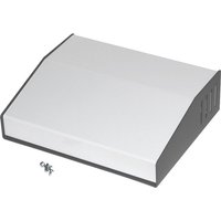 Hammond 500 Series Sloped Steel/Aluminium Ventilated Console Enclosures - Hammond 500-0930, A sloped steel / aluminium enclosure from the Hammond 500 series. The enclosure has a steel base, including the rear panel, and side ventilation slots. The top panel is made from aluminium. Hammond 500-0930 Sloped Enclosure 183x180x58/34mm Steel/Aluminium 2-Tone Grey