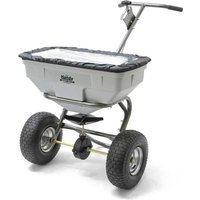 Based on The Handy's THS70HDUTY spreader, the new THS70SALTHDUTY features a stainless steel frame, robust polypropylene hopper and heavy duty gears: design features which make it especially hardwearing and ideal for regular applications of salt. The adjustable feed control allows precise spreading, while the 3.05m-3.66m spread width covers large areas quickly. With pneumatic wheels and a robust frame, it glides smoothly even on rough surfaces. The hopper size allows you to tackle medium sized areas with fewer refills, whether spreading salt, fertilizer, granules, seeds or other materials. Features & Benefits • Heavy duty spreader designed especially for use with salt • Robust stainless steel frame and strong gearing • Adjustable feed control mechanism • Spread width of 3.05m - 3.66m covers a substantial area per pass • Pneumatic wheels comfortably traverse rough terrain • Polypropylene hopper suitable for use with a wide variety of materials • Comes with a cover and sieve for smooth and consistent spreading • 4 Point easy build system for simplified assembly Specifications • Capacity: 32kg (70 lb) • Spread Width: 3.05-3.66 m (10-12 ft) • Drive Type: Hand Push • Suitable For: Ice Melting Salt, Fertilizer, Granules, Seed (and similar materials) • Assembly Required: Yes Contents • THS70SALTHDUTY Spreader • Sieve • Cover