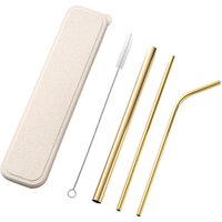High Quality Metal Drinking Straw Reusable 304 Stainless Steel Straw Set With Wheat box