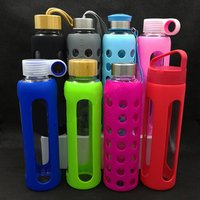 High quality colorful sport drinking BPA-Free borosilicate glass water bottle with protective silicone sleeve