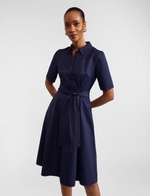 Elevate your workwear wardrobe with this cotton-blend shirt dress from Hobbs. It's made in a regular fit, with an elegant midi-length hem and long sleeves that are gathered at the cuffs for a touch of volume. This piece is complete with a smart collared neckline and a waist-cinching tie belt.