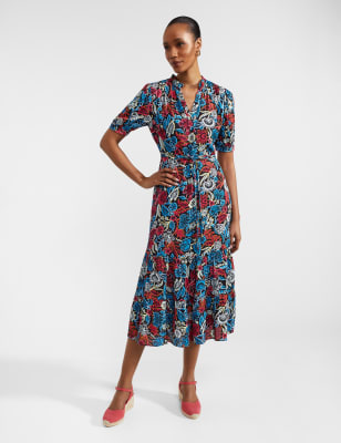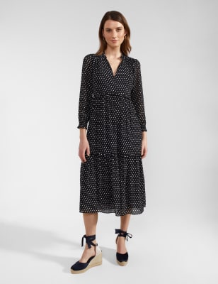 This Hobbs cotton-blend dress is a versatile wardrobe staple. It's cut in a regular fit, with a feminine tiered midi-length hem. The notch neck and short sleeves give it a smart-casual look.