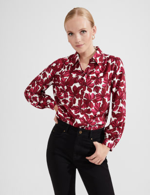 This exceptionally pretty blouse from Hobbs features a floral print to give a feminine feel. It's cut in an easy regular fit, with a button-through fastening at the front and a collared round neck for a smart touch. The long sleeves have frilly cuffs to create a little extra fullness.