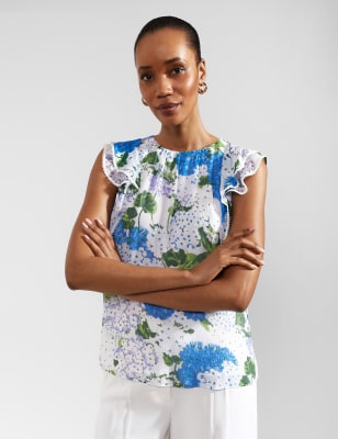 Bring a romantic look to your wardrobe with this elegant floral print blouse by Hobbs. It's cut to a regular fit, with a feminine high neck. The three-quarter-length sleeves are gathered at the cuffs for a touch of volume. A button fastening at the front completes the graceful design.