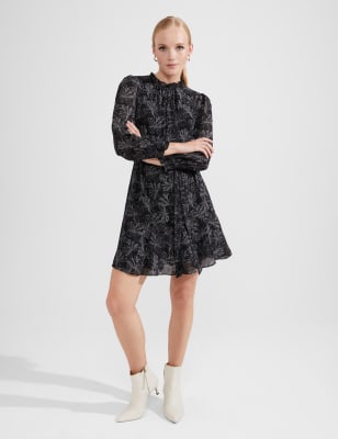 This Hobbs dress is printed with a ditsy floral design for an ultra-feminine feel. It's cut in a regular fit, with a flattering shift silhouette and a mini hemline. This long-sleeved piece features a neat high neck and is complete with covered buttons through the front for a versatile look.