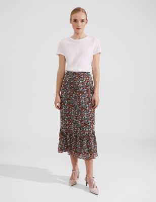 This Hobbs London skirt is the perfect throw-on-and-go piece. It's cut to a flattering A-line shape that falls to a versatile midi length and has an elasticated waistband for an easy, flexible fit. This style is complete with a charming floral print and a tiered hem creating a floaty finish.
