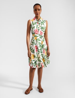 With its vibrant floral print, this waisted dress from Hobbs is a striking choice for special occasions. It's cut to a comfy regular fit, with a fitted sleeveless bodice and a timeless round neckline. The hemline sits at an on-trend midaxi length. This piece is lined for comfort and coverage, and fastens with a neat zip at the back.