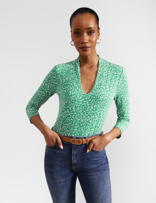 A geometric print lends a distinctive look to this elegant blouse from Hobbs. This flattering design is cut in an effortless regular fit and features a neat crew neck. Buttoned cuffs create subtle volume through the long sleeves. The top is complete with a back keyhole button fastening for a streamlined finish.
