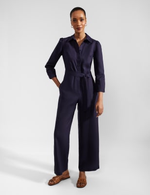 Embrace effortless elegance with this linen-rich jumpsuit from Hobbs. It's designed in a regular fit with a tie belt at the waist for a flattering silhouette. This piece has a breezy v-neckline and short sleeves, while the legs are cropped for a modern finishing touch.