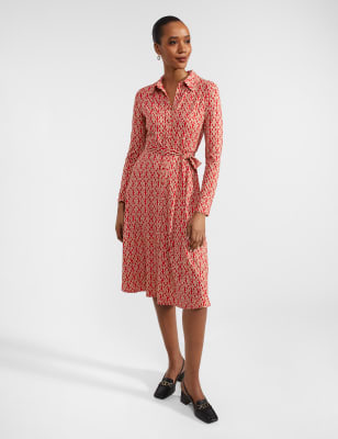 This shirt dress by Hobbs has an understated and stylish all-over print, making it a versatile piece. It's cut in an easy regular fit, with a collared neckline and front button-through fastening to provide a neat look. The midi-length hem creates a neat finish.