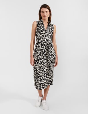 A bold chain print brings statement style to this dress from Hobbs. It's cut in a regular fit, with a self-tie belt to cinch your waist and a fluttery tier at the midi-length hem. A band collar and a v-neck lead to a row of glossy buttons through the bodice. This sophisticated design is finished with long cuffed sleeves and handy side pockets.