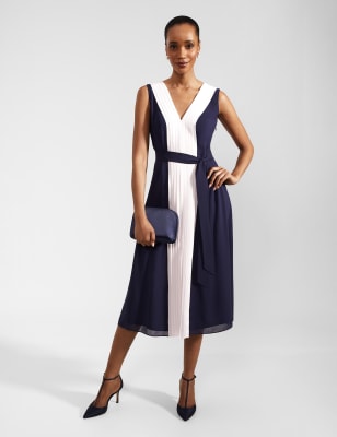 With its stylish print and waisted silhouette, this dress from Hobbs is an elegant choice for any day of the week. It's cut in a regular fit, with a feminine v-neckline and subtle gathering at the bodice and short sleeves. A flattering midi-length hemline completes the versatile design.