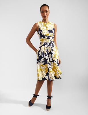 This pure cotton skirt from Hobbs is crafted with a midi-length hemline for a flattering look. It features wide pleats that create a smart, structured shape. The deep waist panel offers a smooth effect and the waistband is elasticated for a comfortable fit.