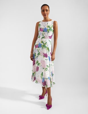 Hobbs Women's Pure Silk Floral Midi Skater Dress - 10 - Ivory Mix, Ivory Mix
