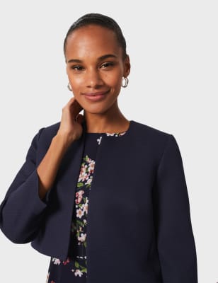 Lend a timeless touch to outfits with this wool-blend blazer from Hobbs. It's cut to a regular fit from textured tweed fabric, with a sleek collarless design. An open front makes this piece easy to layer, and is the perfect way to show off the rest of your outfit. It has four welt flap pockets on the front, finished with statement metallic buttons.