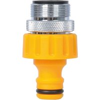 22mm tap connector.The connector securely attaches to the outdoor tap, and converts it to the Hozelock quick connect system.