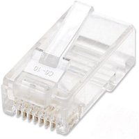 Intellinet Network Solutions RJ45 8-position 8-contact (8P8C) modular plugs provide our customers with options for CAT5e CAT6 and CAT6a cables in unshielded and shielded varieties. We offer 15 micron gold contacts for our standard plugs or a high-quality 50 micron standard in our Premium and Pro lines.<br /><br />- Cat6 RJ45 modular plug<br />- 15 gold-plated contacts<br />- Three-prong terminal for solid wire<br />- Supports 22 to 26 AWG<br />- Fits round cable<br />- For unshielded twisted pair applications<br />- Standard 8P8C design compatible with all network RJ45 connections<br />- Fully compatible with Category 3 4 5 5e and 6 applications<br />- Lifetime Warranty