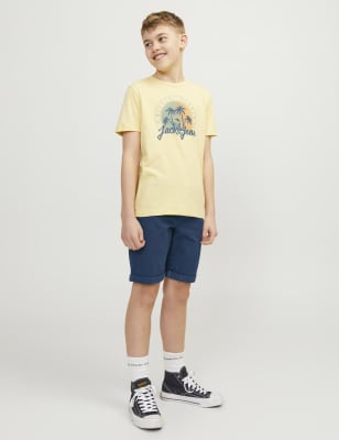 These cotton-rich cargo shorts from JACK & JONES JUNIOR are made for sunny playtimes. They're designed in an easy regular fit and feature an adjustable waist. Packed with handy pockets for storing their small essentials, they have a cool utility vibe. Neat buttons, belt loops and a secure zip fastening complete the look.