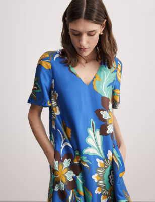 With a bespoke print and luxuriously soft feel, this stunning Jaeger dress delivers stand-out comfort. It's cut in a comfortable relaxed fit with a classic shift silhouette and funnel neckline. The sleeveless shape and maxi length give a floaty finish. Team with minimalist shoes and a neutral bag for special events.