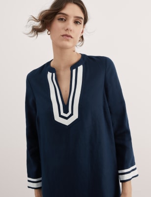 Breeze through sunny days with this lightweight linen midi dress by Jaeger. Cut in a comfy regular fit with a column shape, it comes complete with a flattering tie belt at the waist. Patch pockets on the chest and side seam pockets complete the utility look. Pair with everything from flat sandals to block-heeled shoes during the spring and summer seasons.
